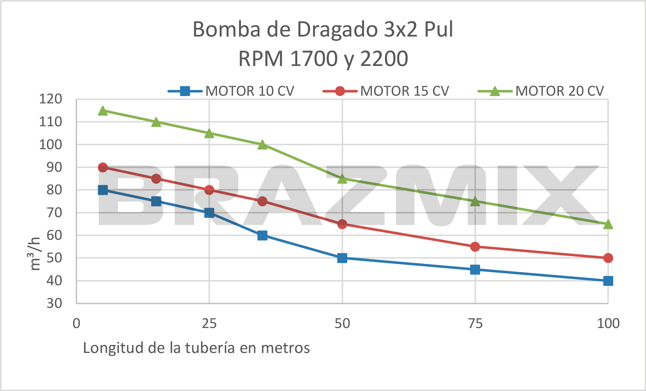 Bomba de dragado de 3x2 pulgadas para la succión de materiales sólidos junto con agua (30 % sólidos y 70 % líquido).