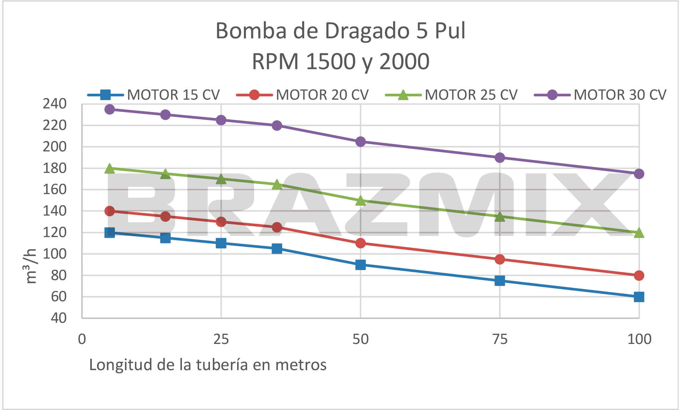 Bomba de dragado de 5 pulgadas para la succión de materiales sólidos junto con agua (30 % sólidos y 70 % líquido).