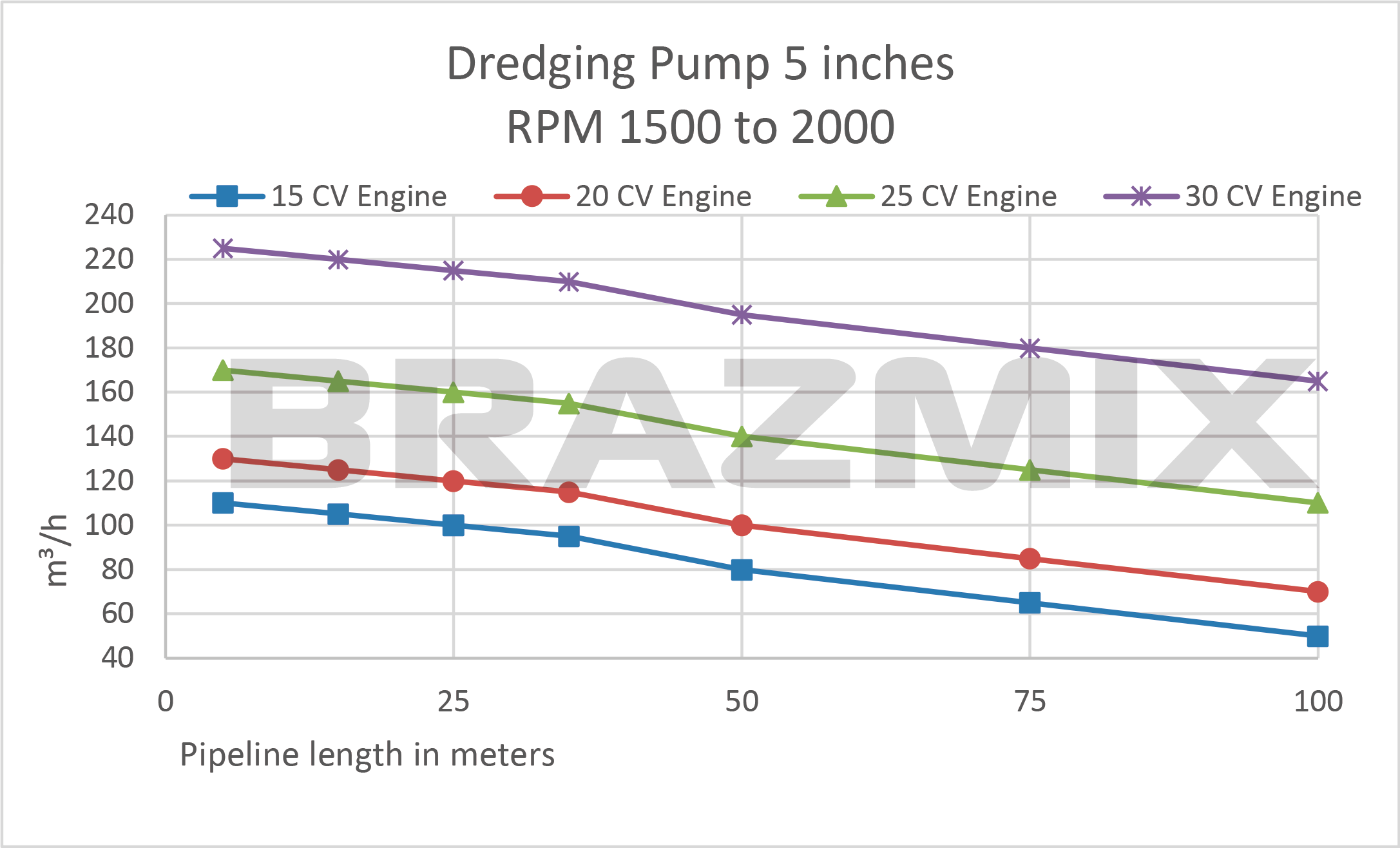 - Engines with higher power (hp) may be necessary depending on the length and drop of the pipeline in the service to be performed, but will not make the pump deliver more m³/h.