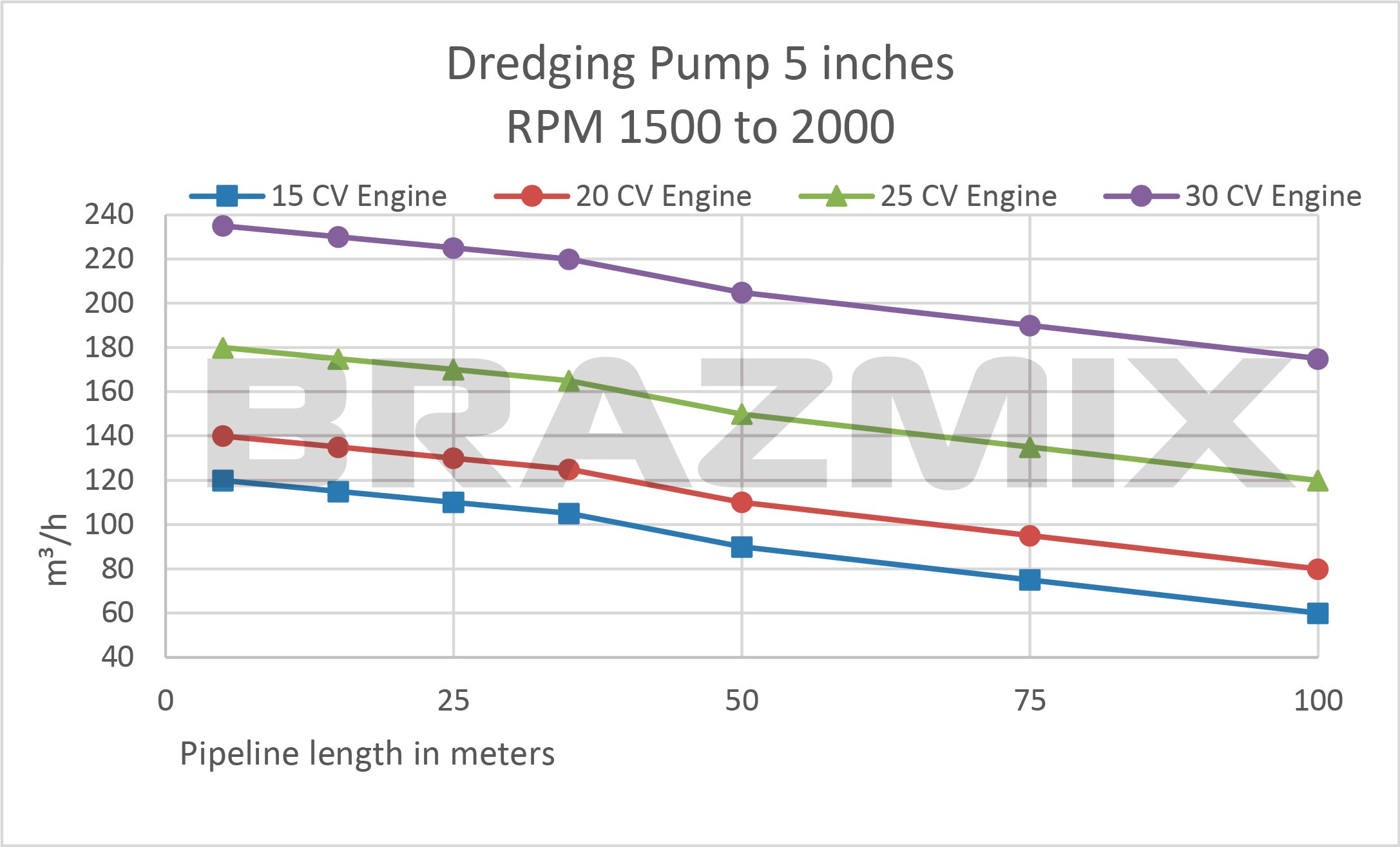 - Engines with higher power (hp) may be necessary depending on the length and drop of the pipeline in the service to be performed, but will not make the pump deliver more m³/h.