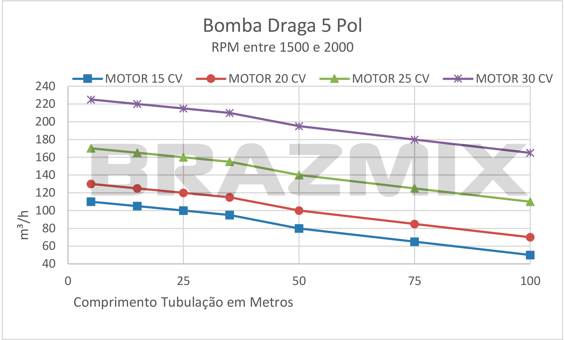 - Motores com potência superior (cv) podem ser necessários dependendo do comprimento e desnível da tubulação no serviço a ser realizado, porém não farão a bomba render mais m³/h.